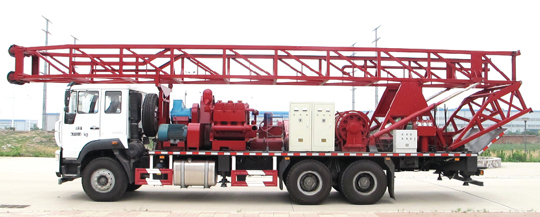 All the parts including the diesel power, gear box, reducing box, hoist, rotary table, mud pump and derrick are all mounted on the chassis. The main transfer is made by mechanically, some parts are controlled by hydraulic.