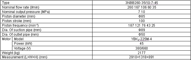 Horizontal tri-cylinder single action piston type variable mud pump for coal mine can be used to supply cool fluid matching with tunnel drilling rig, the fluid is mainly mud or coal water with sediment concentration is less than 4%, it also can be used as grouting pump of cement slurry in foundation engineer. There is 4 speeds with 4 displacement to meet different drilling.