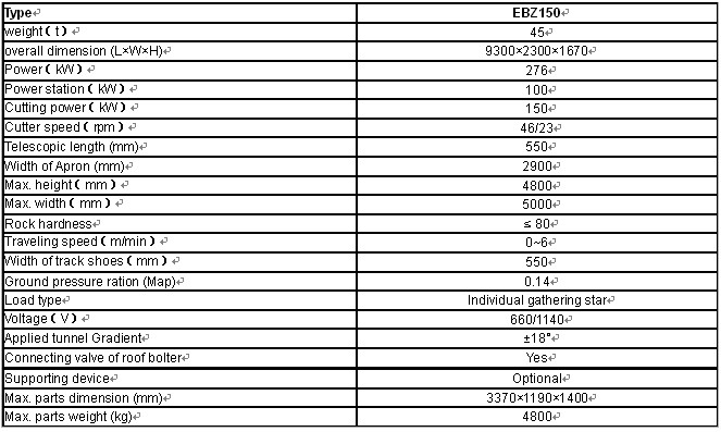 EBZ150 Road Header is a kind of jib armed, lengthwise direction tunneling machine with the functions of cutting, loading and traveling, suitable for the coal or half coal tunnel.