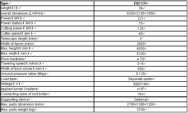 EBZ135 Road Header is a kind of jib amed, lengthwise direction tunneling machine with the functions of cutting, loading and traveling, suitable for the coal or half coal tunnel.