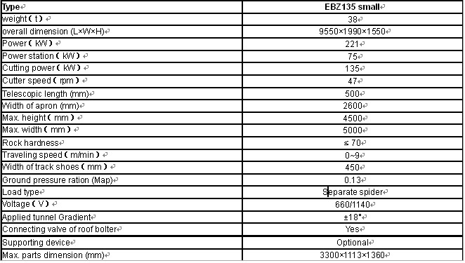 EBZ135 small Road Header is a kind of jib armed, lengthwise direction tunneling machine with the functions of cutting, loading and traveling, suitable for the coal or half coal tunnel.