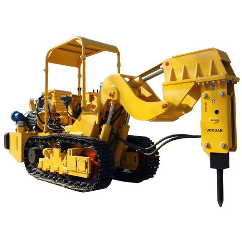 It is used to break the big rock or coal and maintenance to the bottom and wall of tunnel. It is a modification to ZCY-60 rock loader, remove the bucket and bucket base, and a adapter and a hammer. It can be used in the conditions with explosion proof or other special requirements such as underground road, surface area, etc. The bucket and the hammer can be exchanged easily to be used as a rock loader.