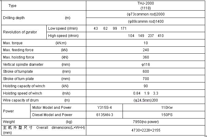 It is suitable for coalfield, geological, hydro-geological, metal ferrous and non metal ferrous hole drilling engineering, also for drilling and exploration underground water resource, shallow petroleum, natural gas and geothermal.