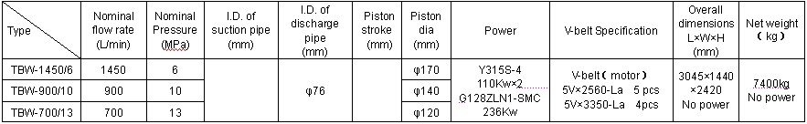 The unit is mainly used for supplying rinsing in drilling underground water resource, shallow petroleum and coal gas etc. The rinsing may be mud or water, it can also be used as a injecting pump for above mentioned usages. Different flow rate and pressure can be achieved by changing cylinder liner or piston.