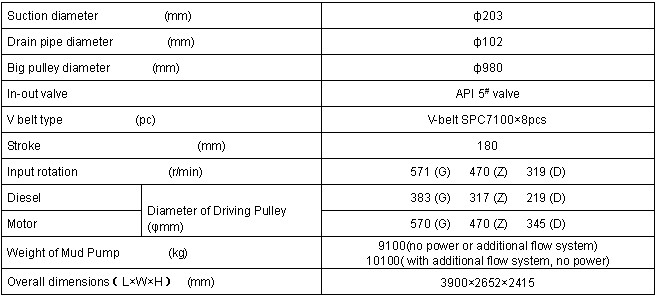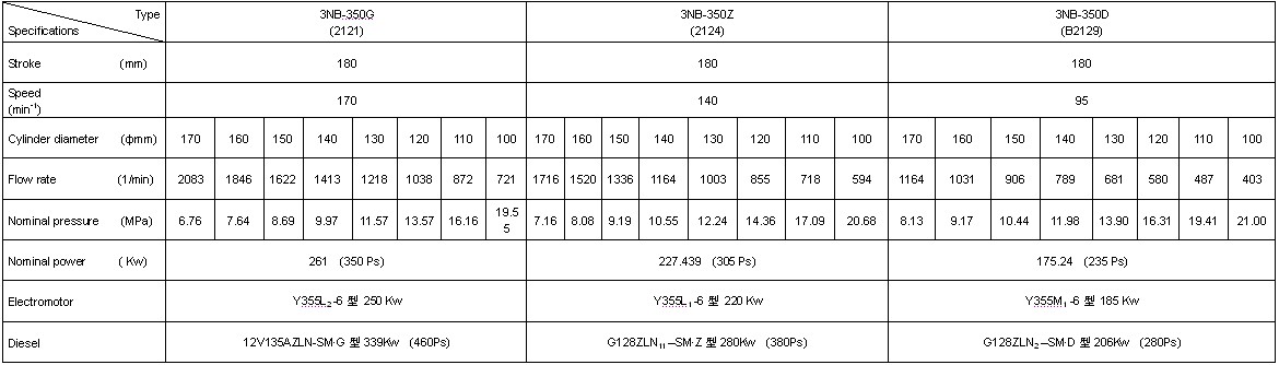 3NB-350 mud pump is a kind of tri-cylinder and single-acting reciprocating pump using mud as medium. It can match with drilling machine whose drilling depth is within 2600 meters to explore water or petroleum. It is classified into three types: high speed, middle speed and low speed according to different suction systems. The power may change accordingly.