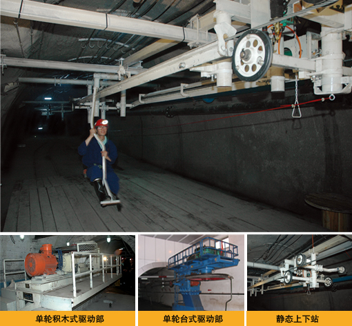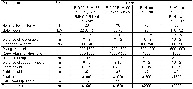 Chairlift transport System The chairlift transport system is divided into three series, RJHY movable chair series, RJKY detachable chairs series, RJY fixed chairs series. RJHY and RJKY are applicable to the roadways with 0-25°gradient. And RJY is for 0-35 °. Horizontal turning device, great inclination cable grasper is the first developed in China and obtained national patent. ● The driving part can be adjusted by variable frequency, magnetic reluctance frequency or soft starting control forms to achieve different speed conversion. ● The electronic control system applies PLC to achieve the protections such as control the system speed, pull emergency stop along the way, the crew crossing the line, heavy lump limit and other safety protection, with voice alarm sound and light communication and unattended and many other features. ●It is with high-speed braking and safety brake at the end, both the braking are fail-safe. The power pack is single or double-loop structure. The whole system is secure and reliable. ● Fixed cable holder applies advanced preload structure, and will not loose or slip. ● High-speed cable holding device is whole casted, safe, beautifully produced. Sliding part applies SKF maintenance-free bearings with high reliability and long service life. ●The chair is special shock absorber spring seat or soft seat foam seat or two-way travel chairs with reasonable structure, comfortable to sit. ● Pulley diameter is big, with steel body and wear soft lining to reduce rope wear and tear, long life, the crew ride smooth and comfortable. ● The wheels and hanging tube are reasonable designed, the replacement of wheel line and the lubrication of bears are easy. Requirements for precision of beam is low, the installation can be carried out in variable conditions. ● couplings, lifting tube, bearing shaft are treated by advanced anti-corrosion technology; The cable holding device, chairs, wheels are galvanized or spray finished, the complete equipment is corrosion resistant