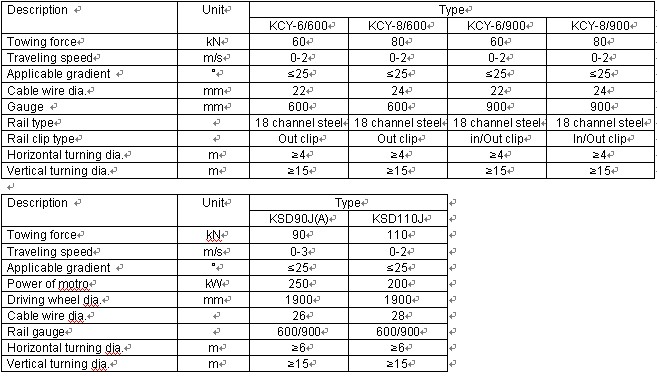 ● KSD series of wire-driven Coolie Car is driven by variable frequency motor, mechanical transmission, it is with features such as soft start, soft stop, safe, reliable, high transmission efficiency, big traction, good climbing ability, less failure, no pollution, and low operating costs. This kind of Coolie Cars can be automatic, semi-automatic operation or manual drive, and show all the technical parameters, and achieve long-distance data transmission, the performance is up to international advanced level.
