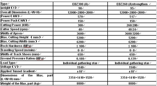 EBZ300(A)/EBZ260(A)TBM is a kind of tunneling machine with an integrated functions of cutting, loading and traveling, it is used for underground cutting of roadways with any section profile, can also be used in the tunneling of railway road. The hardness will be f≤8.