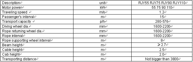 Suitable slope 0-35 °, the maximum traction 40kN, a maximum speed 1.2m / s, transport capacity 576 people / h.