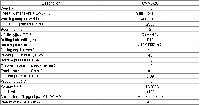 3, The machine is equipped with two drilling boom and propulsion, and two drill booms are independent to each other.