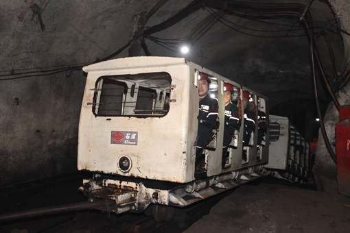 2005 used the general rail coolie car, in January 2011, change to SMJ160 profiled rail, the transport distance is 2300m, the max gradient is 16°, used to transport material and hydraulic supporter.