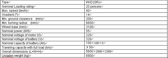 It is a kind of trackless rubber tired cart driven by a new kind of energy, with the reinforced chassis, mechanical transmission, double rear wheel driven, hydraulic power steering, multi-disk wet braking, combined shock absorption. It is mainly applied in the underground lanes with section is not less than 3m*2.8m, gradient is not more than 14 degree for the transportation of personal.